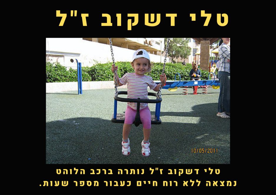 באוגוסט 2011 אולגה זבירוב, סייעת בגן "הקקדו הלבן" בנתניה. שכחה ברכב ההסעות את טלי דשקוב ז"ל בת השלוש, טלי ז"ל שנותרה ברכב הלוהט נמצאה ללא רוח חיים כעבור מספר שעות.